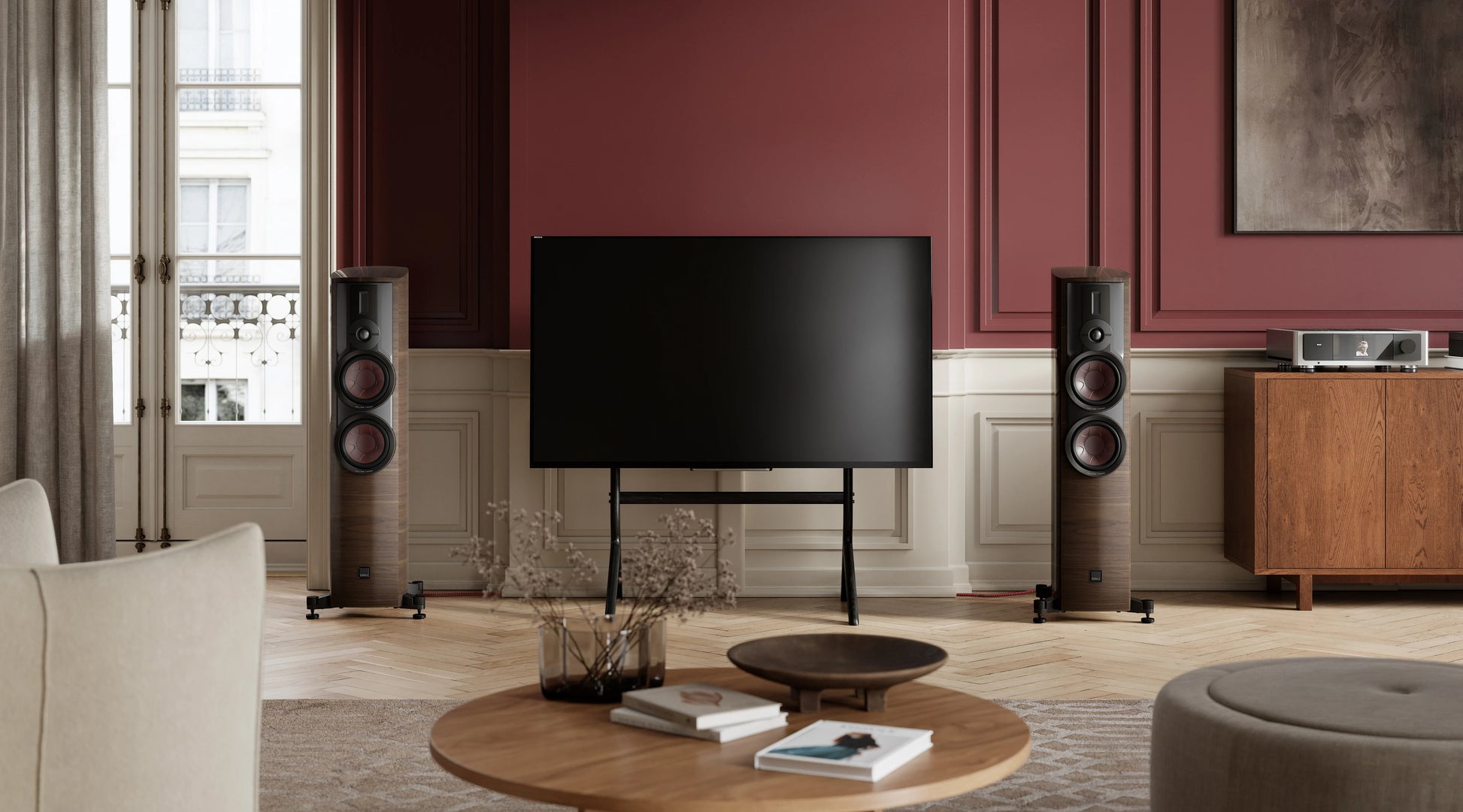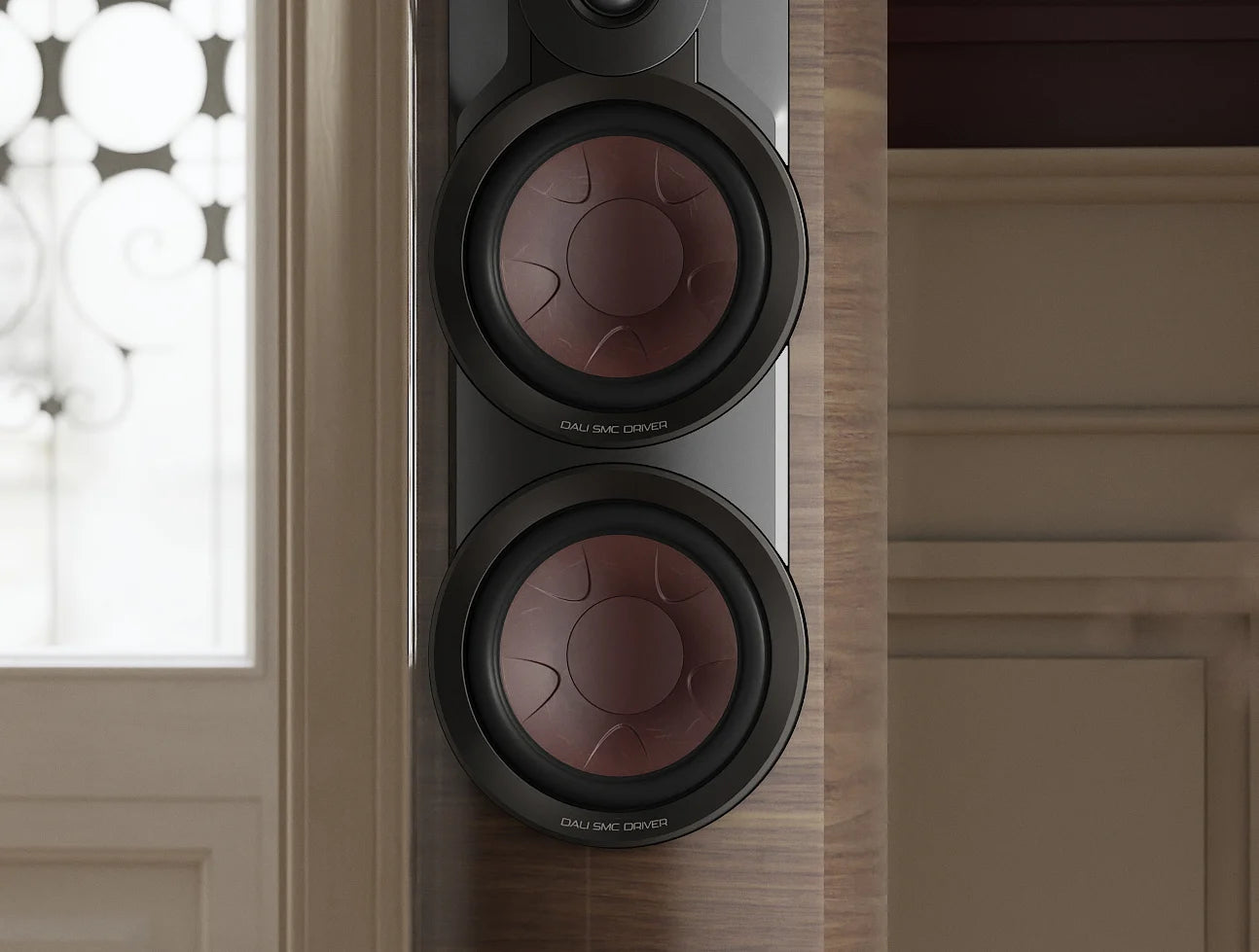 Sein Charakter entsteht aus der Summe sorgfältiger Entscheidungen. Das EVO-K Hybrid-Hochtonmodul verbindet eine großzügige 35-mm-Gewebekalotte mit einem fein abstrahlenden Planar-Element; gemeinsam liefern sie eine luftige, verzerrungsarme Hochtonwiedergabe, die auch komplexe Aufnahmen nicht verhärtet, sondern öffnet. Darunter arbeiten zwei 7-Zoll-Treiber aus Papier-/Holzfasermaterial, angetrieben von Magnetsystemen mit SMC Gen-2 – DALIs Material gegen Wirbelströme und damit gegen klangschädliche Nichtlinearitäten. Das Ergebnis ist eine Darstellung, die Kontur mit Farbenreichtum verbindet: Stimmen stehen greifbar im Raum, Becken klingen lang aus, Basslinien bleiben elastisch und präzise.