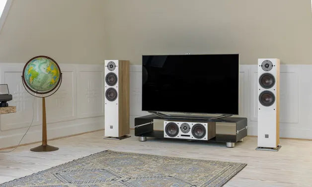 DALI setzt beim OBERON 5 auf die hauseigene Mischung aus Leichtigkeit und Kontrolle. Zwei 13-cm-Tiefmitteltöner mit Holzfaser-Membran sorgen für Tempo, Textur und ein erstaunlich solides Fundament, ohne den Raum zu überlasten. Die groß dimensionierte Gewebehochtoneinheit bringt Luft und Glanz, bleibt dabei aber stets seidig – genau richtig für lange Abende und anspruchsvolle Aufnahmen. Das breitbandige Abstrahlverhalten macht den Hörplatz großzügig: Man sitzt nicht „festgenagelt“, sondern hört entspannt – allein oder zu zweit, Sofa oder Esstisch.