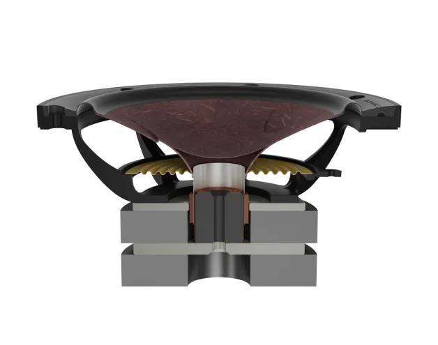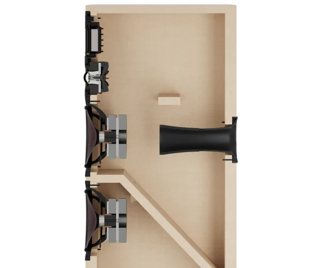 Die Serie trägt ihren Namen nicht zufällig: Vieles stammt direkt aus der KORE-Entwicklung. Im Antrieb sitzen SMC-Motorsysteme für minimale Verzerrungen, in der Frequenzweiche arbeiten SMC-KORE-Spulen und selektierte Mundorf-Bauteile für saubere, verlustarme Übergänge. Selbst das Bassreflexsystem folgt der Continuous-Flare-Geometrie, die Strömungsgeräusche vermeidet und Tiefgang ohne Aufblähen erlaubt. Das Ergebnis ist ein schwärzerer Hintergrund, mehr Feindetail – und ein Bass, der federnd trägt statt zu walzen.